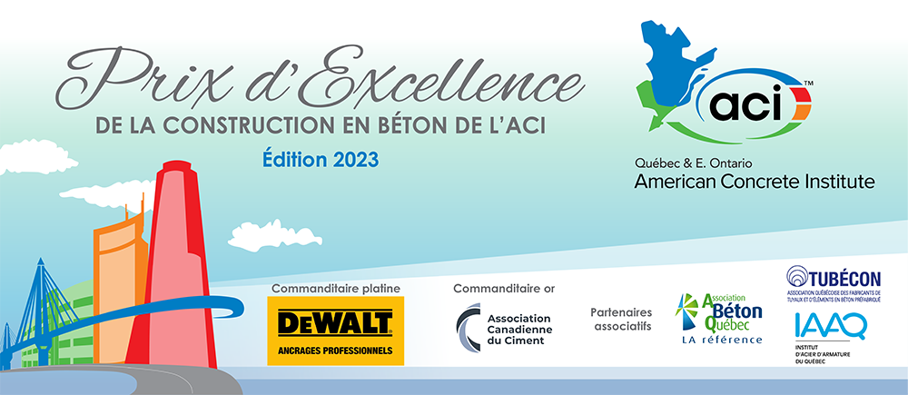 L'ACI tient à remercier tous ceux et celles qui ont soumis leur(s) projet(s) à ce grand concours qui souligne l’excellence de la construction en béton au Québec et l’est de l’Ontario dans sept grandes catégories. Cette année, un total de 21 candidatures ont été déposées. Ces dernières ont été évaluées par un jury composé de 8 juges, représentant les diverses branches de l’industrie du béton, selon des critères de mérite architectural, de mérite d'ingénierie, de créativité, et de méthodes techniques innovantes. Les gagnants ont été dévoilés lors d'un gala tenu le 16 mars 2023. Le gala a été présidé par M. Jean-Marc Fournier de l’Institut de développement urbain du Québec (IDU) et animé par Mme Caroline Côté auquel plus de 160 convives étaient présents.