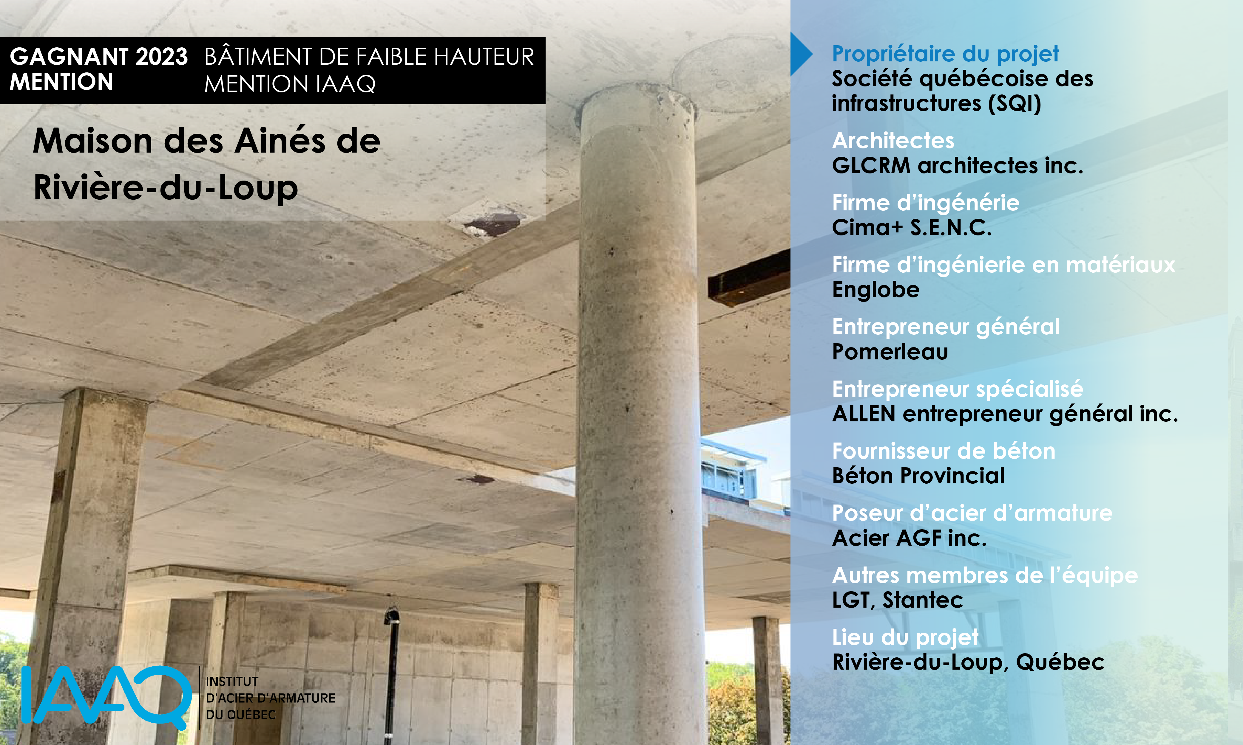 Compte tenu de l’aléa sismique régional élevé, CIMA+ a opté pour un SRFL optimisé grâce à des analyses d’interaction sol-structure. En vue de réduire la masse sismique de la charpente de béton, les dalles structurales ont été amincies au maximum, tout en respectant les limites de flèches de plancher et de toiture, d’enveloppe, et de scellant coupe-feu pour murs de blocs.