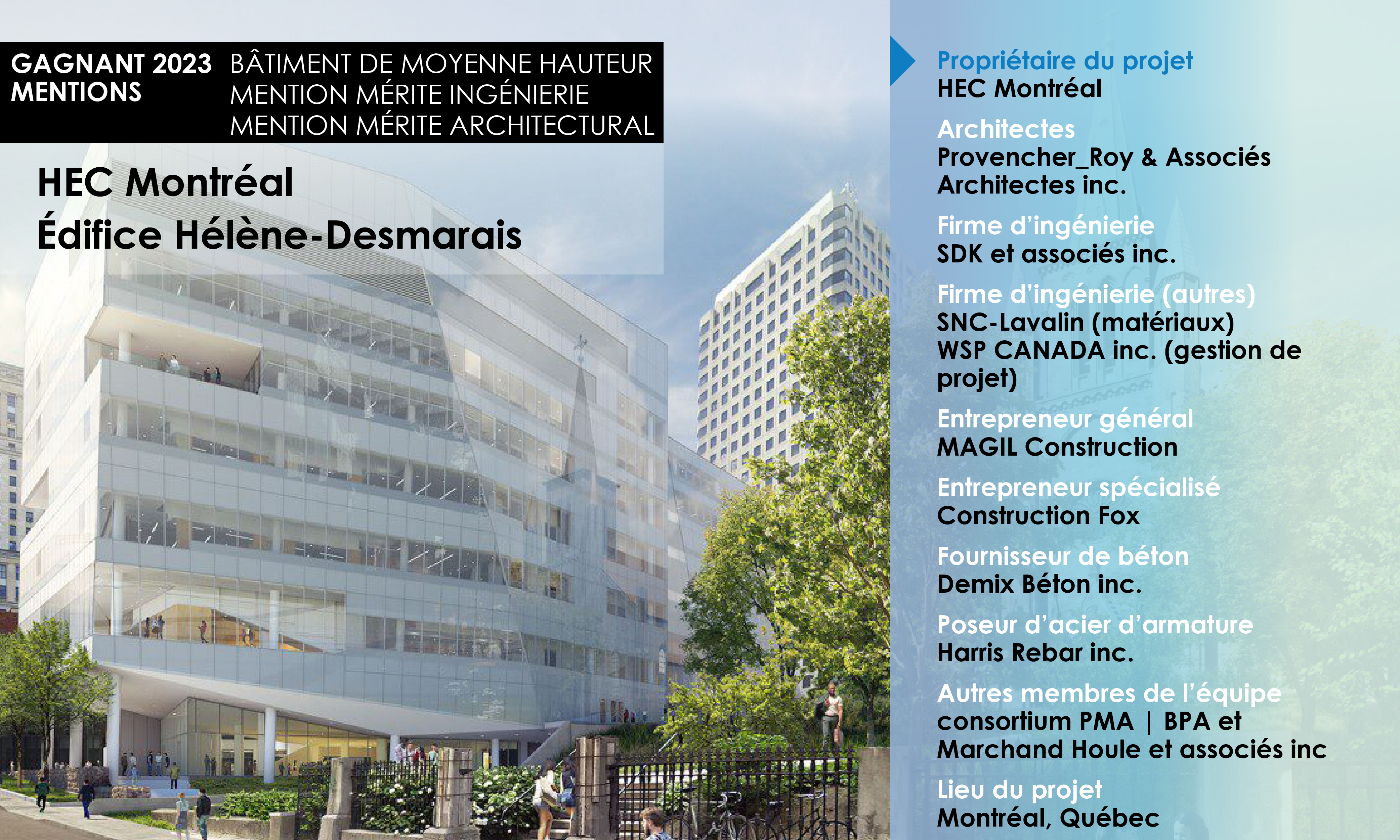 Enfin, puisque ce projet vise une accréditation LEED Or, le béton spécifié contient suffisamment de matières recyclées et régionales selon les exigences LEED-NC 2009.