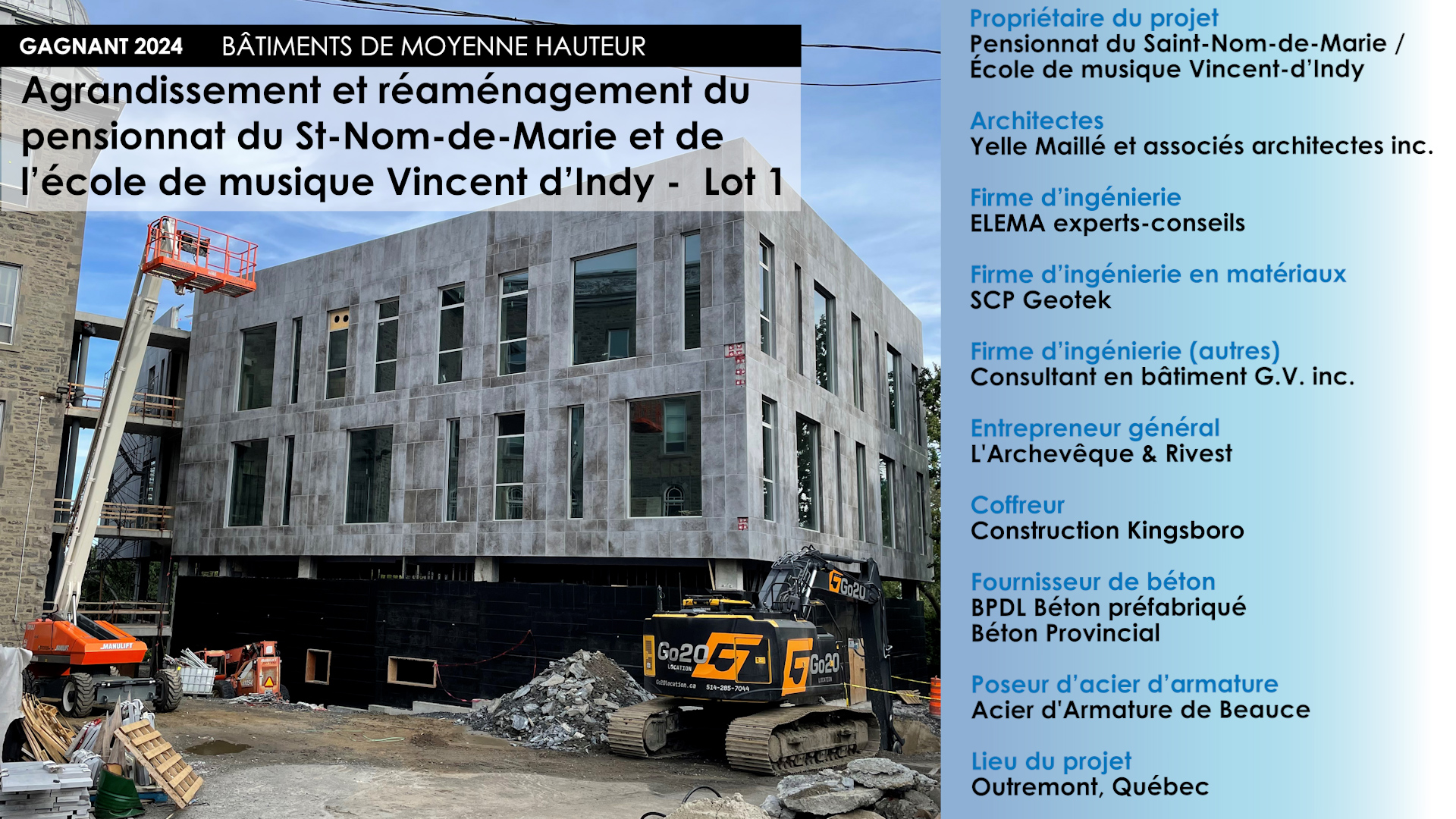 - La flexibilité du béton a permis une conception des unités de fondations de manière à limiter les charges sur l’emprise d’un tunnel de métro de la STM et de limiter les vibrations liées à la construction afin de ne pas nuire aux opérations du métro;